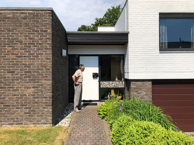 Op uitnodiging van dochter Els Vandermeulen bracht ik een bezoekje aan het ouderlijke huis in Bree. Het huis ademt de tijdsgeest van de jaren 60. De klink aan hun voordeur is een meesterwerk van zo’n drie meter breed. Hun ouders, Leon Vandermeulen en Gertje Vaes bakten de klinken op zolder. Naast inspiratieloze bordjes en schoteltjes met logo’s van bedrijven die dienst deden als relatiegeschenken, kruisbeelden, wijwatervaatjes en asbakken waren de klinken een medium waar Gertje Vaes haar creatieve geest in kwijt kon.
